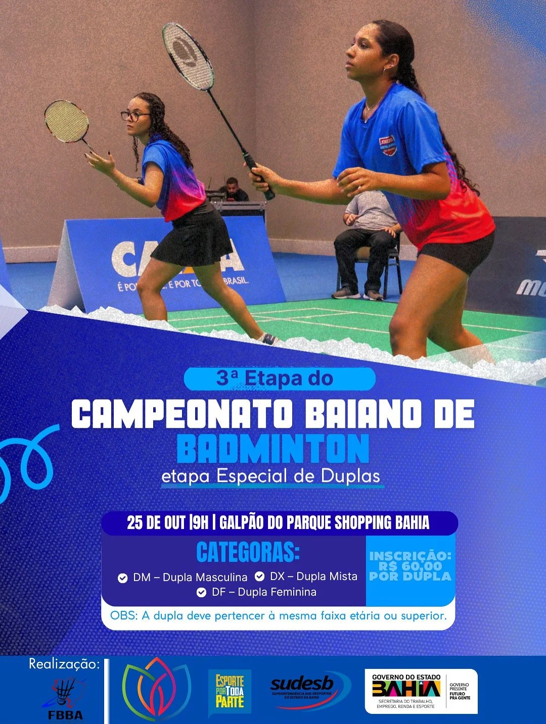 Monte sua dupla e participe dessa edição especial do Campeonato Baiano de Badminton!